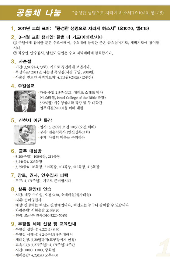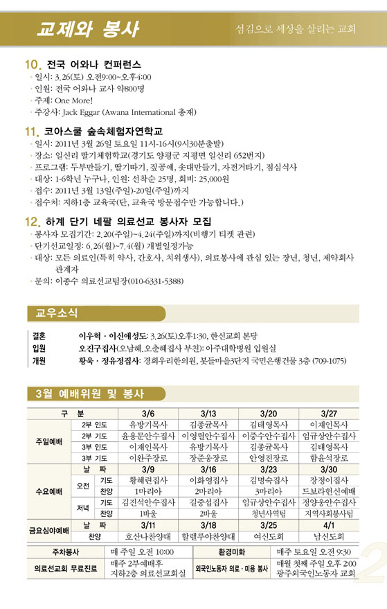 2011³â4¿ù ù°ÁÖ(4/3) ¿¹¹è, ±³È¸¼Ò½Ä