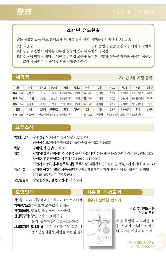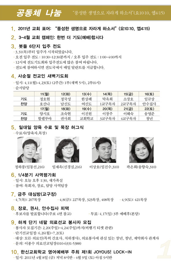 2011³â4¿ù ù°ÁÖ(4/3) ¿¹¹è, ±³È¸¼Ò½Ä |
