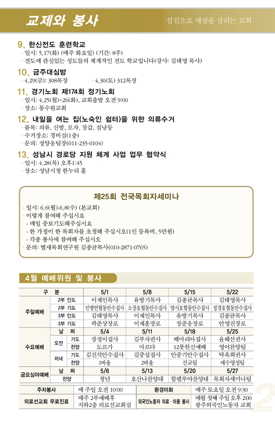2011³â4¿ù ù°ÁÖ(4/3) ¿¹¹è, ±³È¸¼Ò½Ä