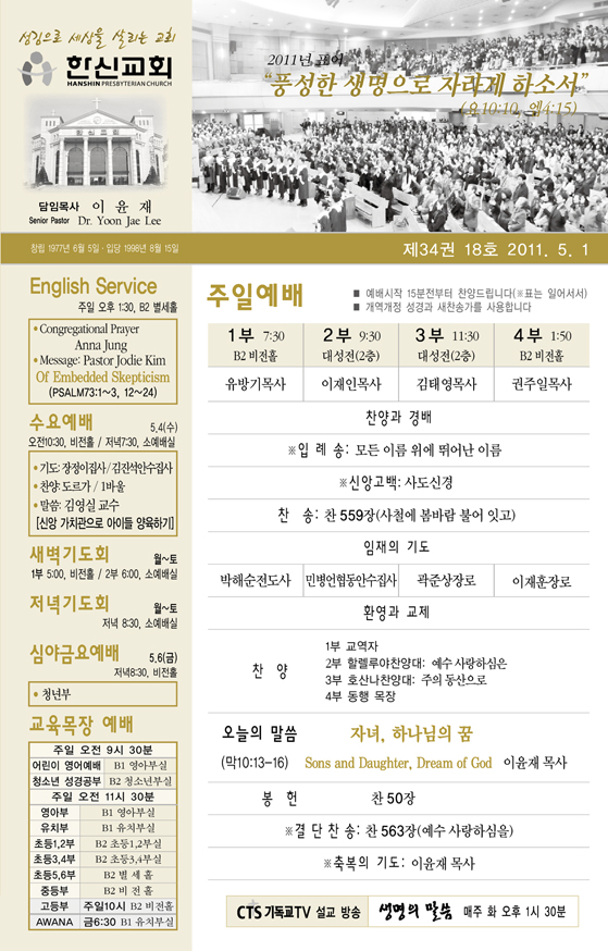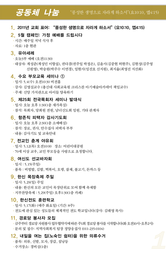 2011³â5¿ù ù°ÁÖ(5/01) ¿¹¹è, ±³È¸¼Ò½Ä |