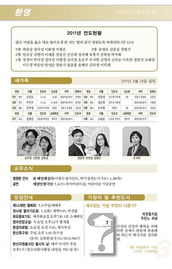 2011³â4¿ù ù°ÁÖ(4/3) ¿¹¹è, ±³È¸¼Ò½Ä