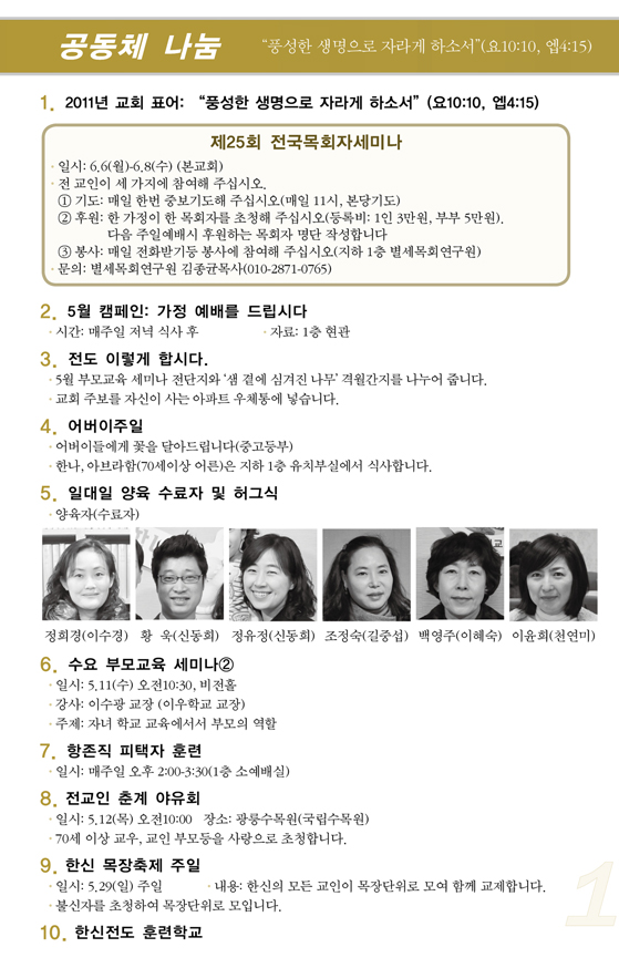 2011³â4¿ù ù°ÁÖ(4/3) ¿¹¹è, ±³È¸¼Ò½Ä