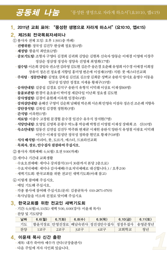2011³â6¿ù ù°ÁÖ(6/05) ¿¹¹è, ±³È¸¼Ò½Ä |