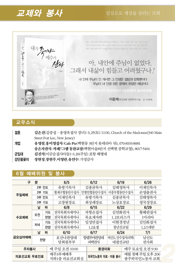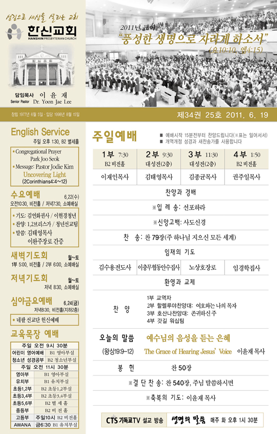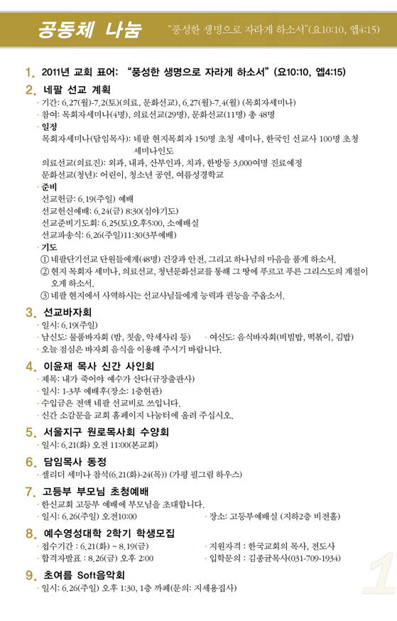 2011³â6¿ù ¼Â°ÁÖ(6/19) ¿¹¹è, ±³È¸¼Ò½Ä |