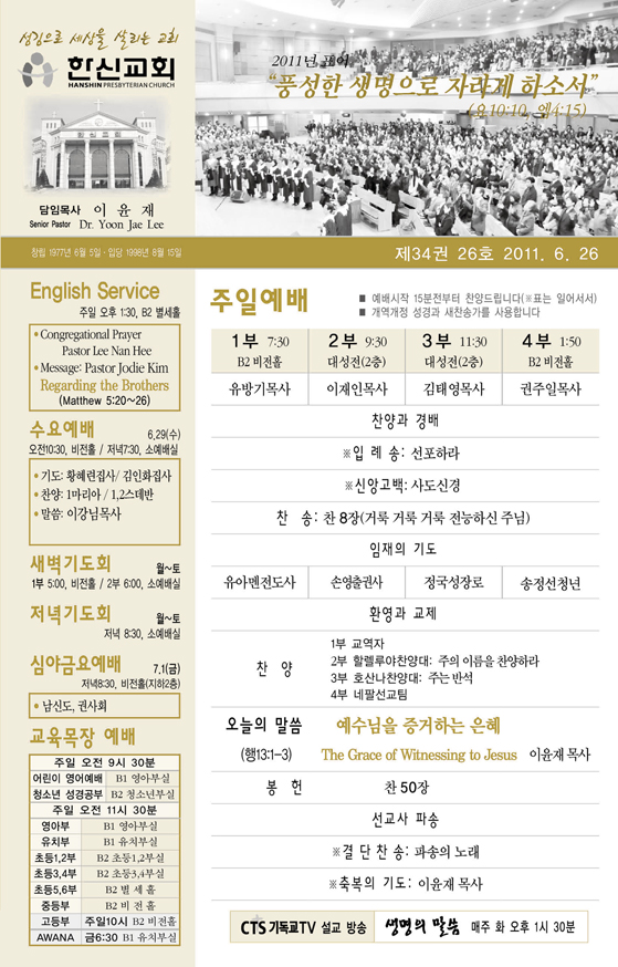 2011³â6¿ù ³Ý°ÁÖ(6/26) ¿¹¹è, ±³È¸¼Ò½Ä |