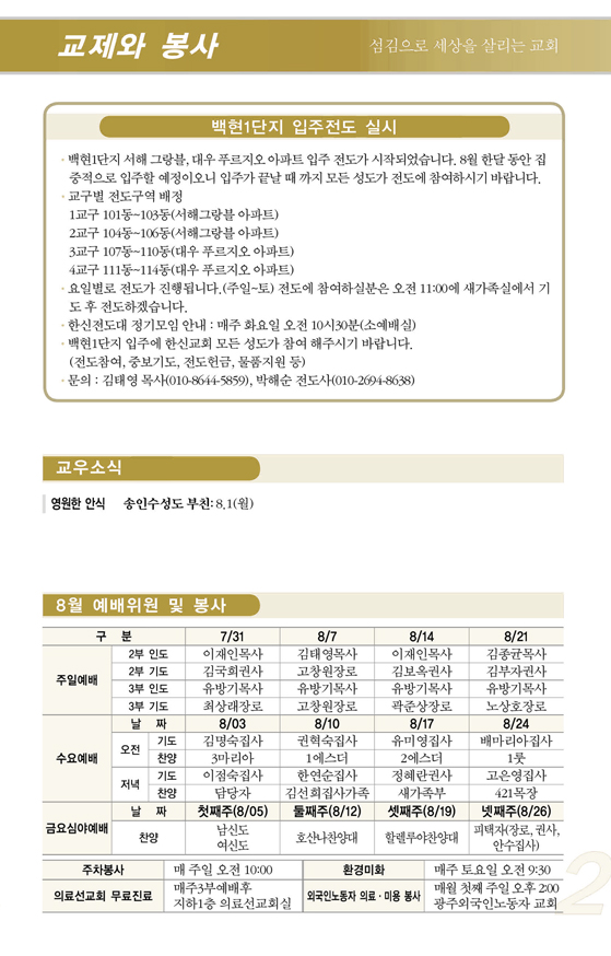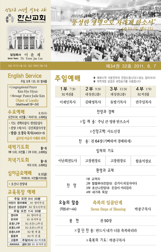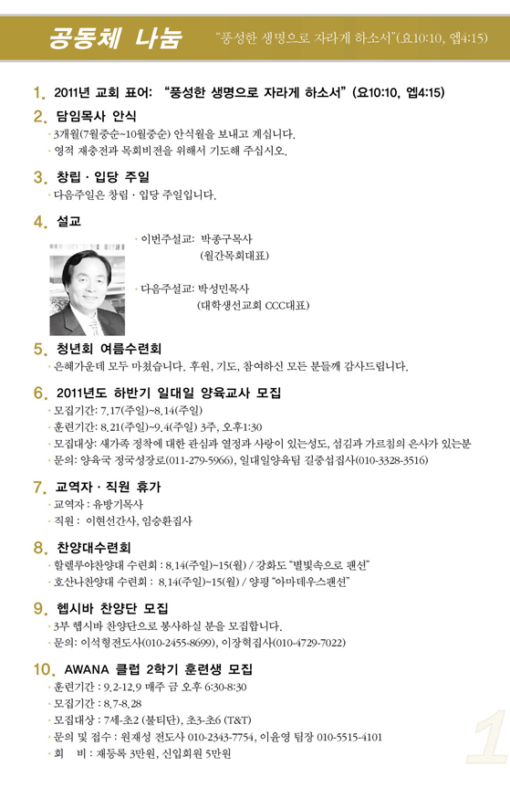 2011³â8¿ù ù°ÁÖ(8/07) ¿¹¹è, ±³È¸¼Ò½Ä |