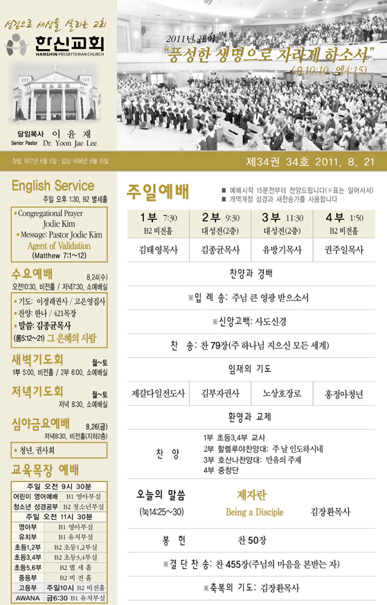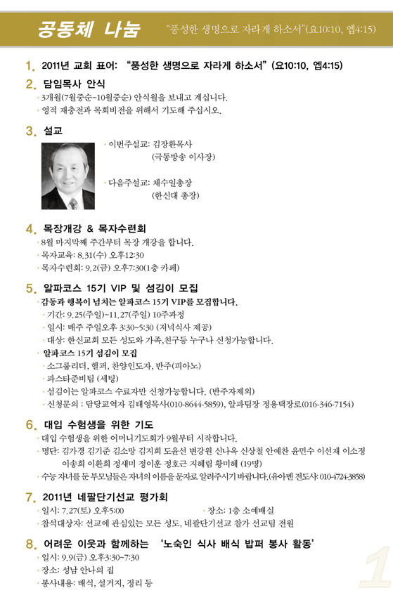 2011³â8¿ù ¼Â°ÁÖ(8/21) ¿¹¹è, ±³È¸¼Ò½Ä |