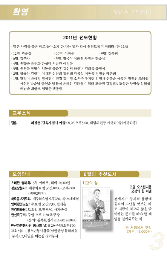 2011³â8¿ù ¼Â°ÁÖ(8/21) ¿¹¹è, ±³È¸¼Ò½Ä