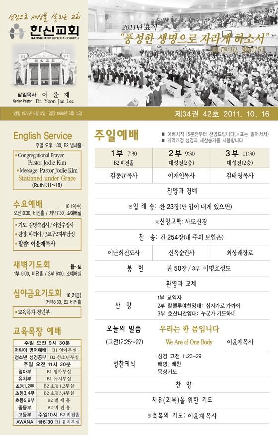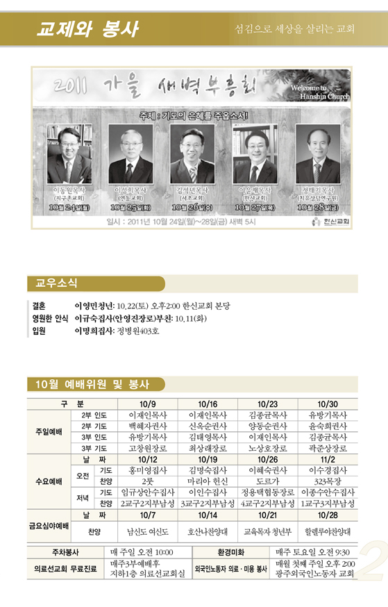 2011³â10¿ù ù°ÁÖ(10/02) ¿¹¹è, ±³È¸¼Ò½Ä