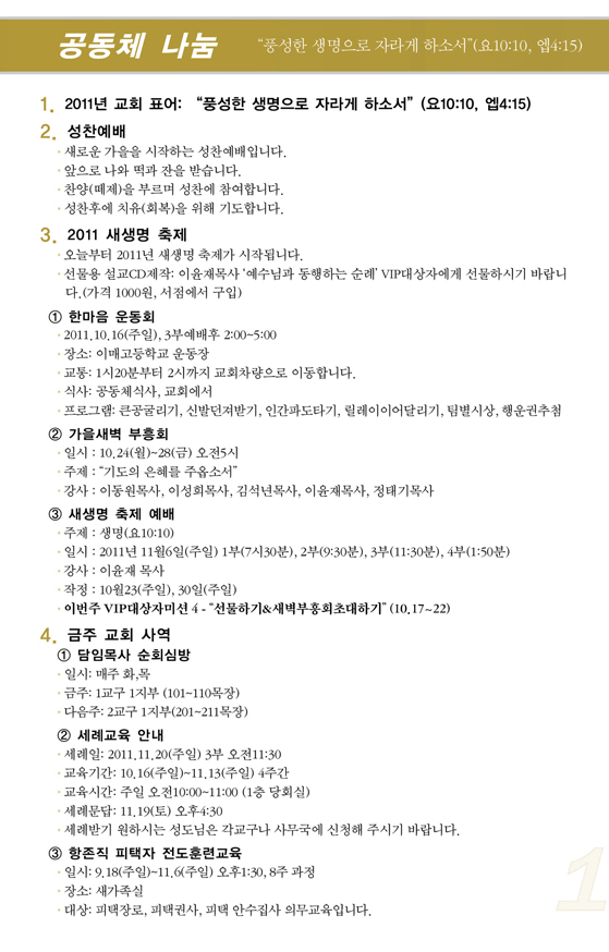 2011³â10¿ù ¼Â°ÁÖ(10/16) ¿¹¹è, ±³È¸¼Ò½Ä |