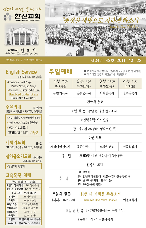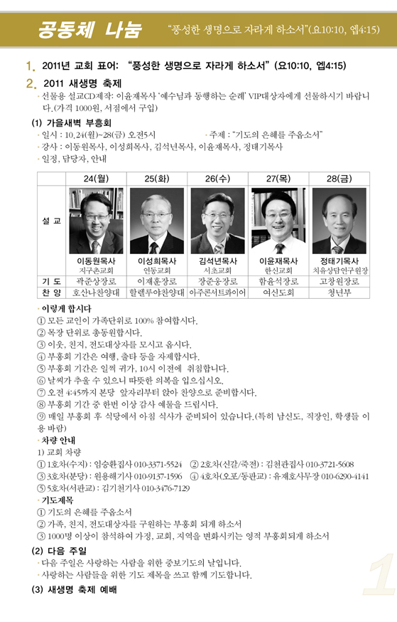 2011³â10¿ù ³Ý°ÁÖ(10/23)¿¹¹è, ±³È¸¼Ò½Ä |