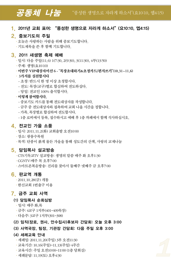 2011³â10¿ù ´Ù¼¸Â°ÁÖ(10/30)¿¹¹è, ±³È¸¼Ò½Ä |