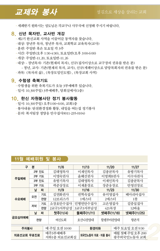 2011³â11¿ù ù°ÁÖ(11/06)¿¹¹è, ±³È¸¼Ò½Ä