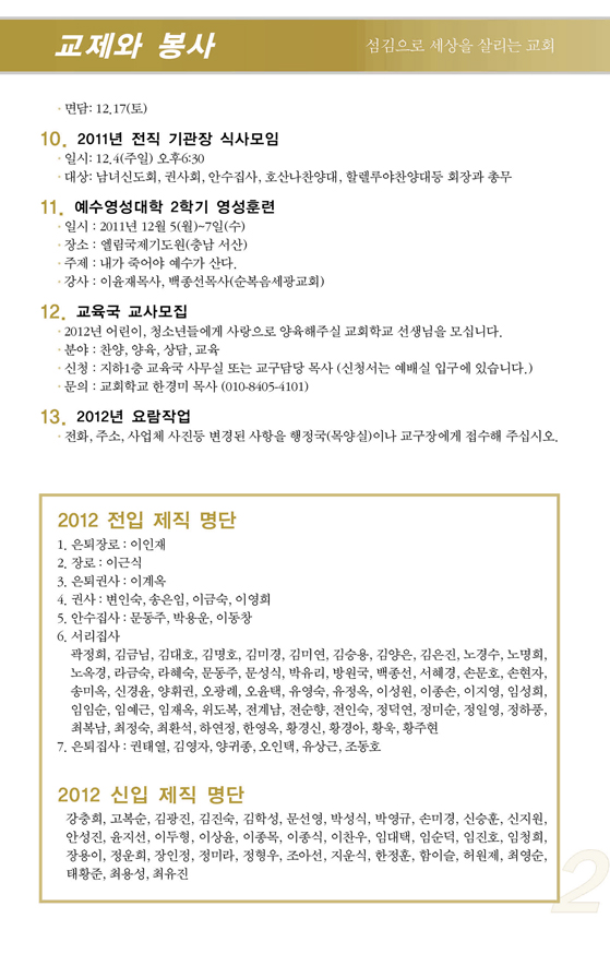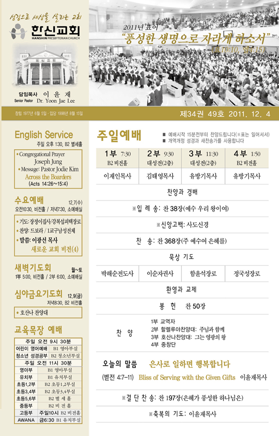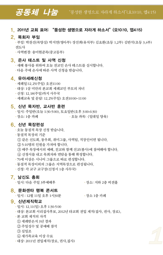 2011³â12¿ù ù°ÁÖ(12/04)¿¹¹è, ±³È¸¼Ò½Ä |