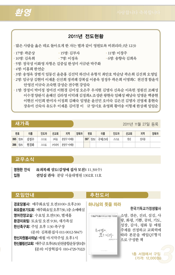 2011³â11¿ù ù°ÁÖ(11/06)¿¹¹è, ±³È¸¼Ò½Ä