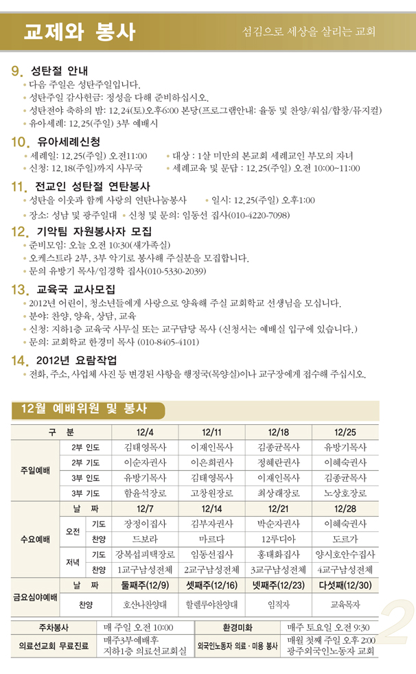 2011³â12¿ù ³Ý°ÁÖ(12/25)¿¹¹è, ±³È¸¼Ò½Ä