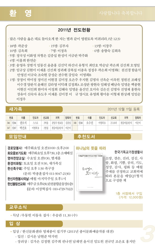 2011³â12¿ù ¼¼Â°ÁÖ(12/18)¿¹¹è, ±³È¸¼Ò½Ä