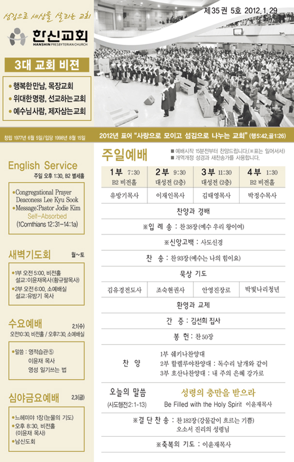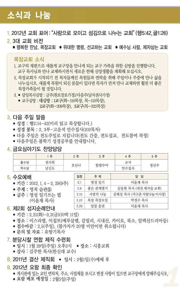 2012³â1¿ù ´Ù¼¸Â°ÁÖ(1/29)¿¹¹è, ±³È¸¼Ò½Ä |