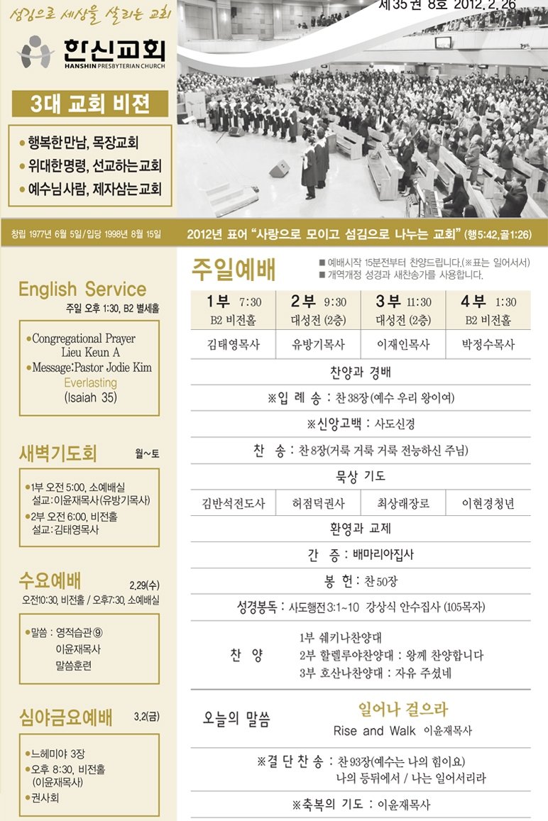 2012³â2¿ù ³Ý°ÁÖ(2/26)¿¹¹è, ±³È¸¼Ò½Ä |