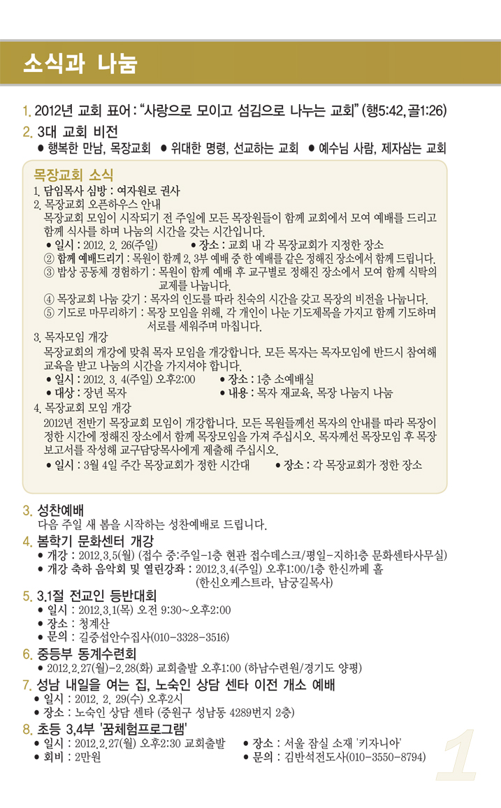 2012³â3¿ù ù°ÁÖ(3/4)¿¹¹è, ±³È¸¼Ò½Ä