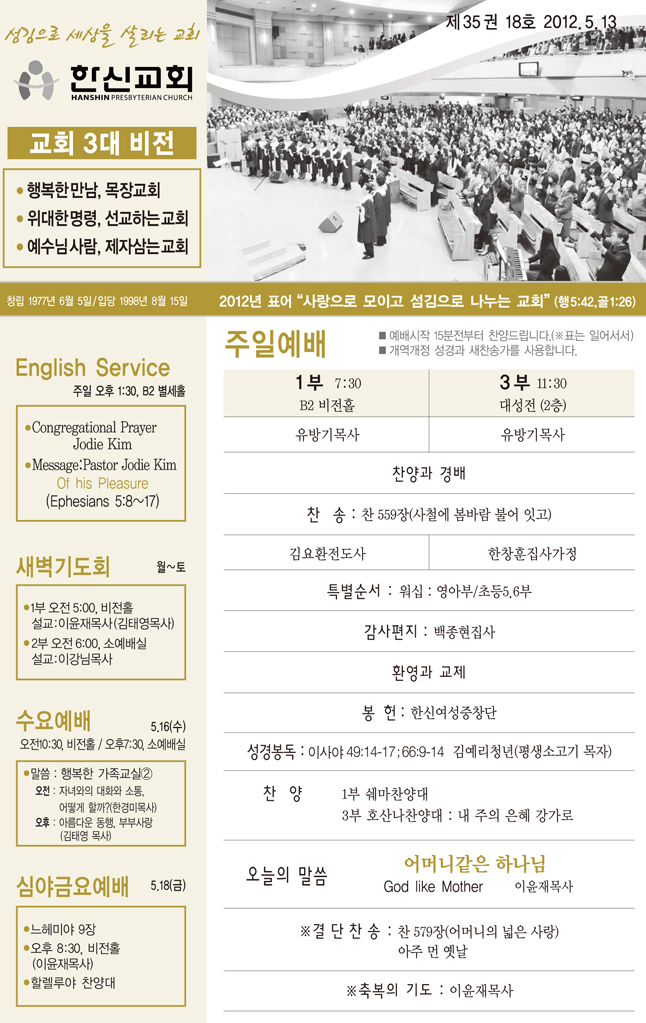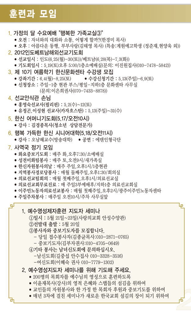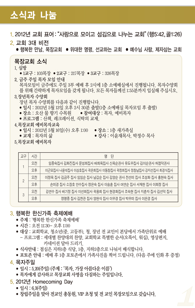2012³â5¿ù ù°ÁÖ(5/6)¿¹¹è, ±³È¸¼Ò½Ä