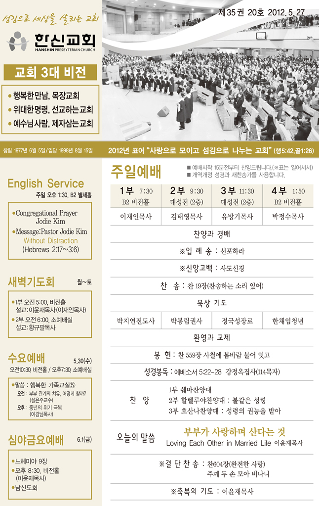 2012³â5¿ù ³Ý°ÁÖ(5/27)¿¹¹è, ±³È¸¼Ò½Ä |