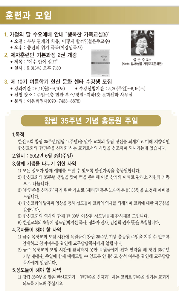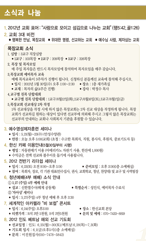 2012³â5¿ù ù°ÁÖ(5/6)¿¹¹è, ±³È¸¼Ò½Ä
