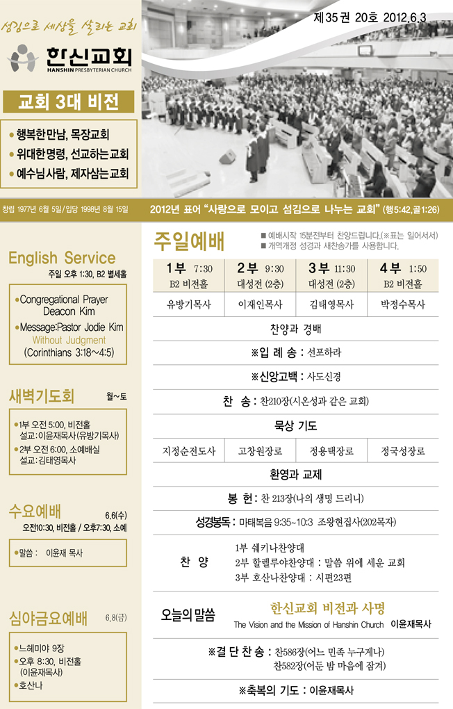 2012³â6¿ù ù°ÁÖ(6/3)¿¹¹è, ±³È¸¼Ò½Ä