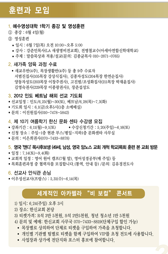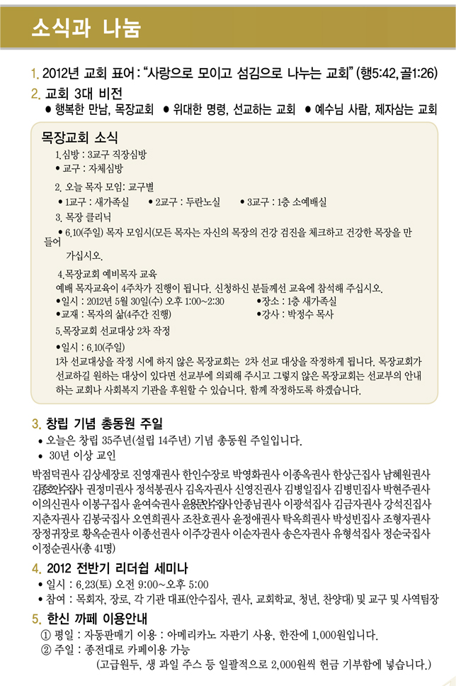 2012³â5¿ù ù°ÁÖ(5/6)¿¹¹è, ±³È¸¼Ò½Ä