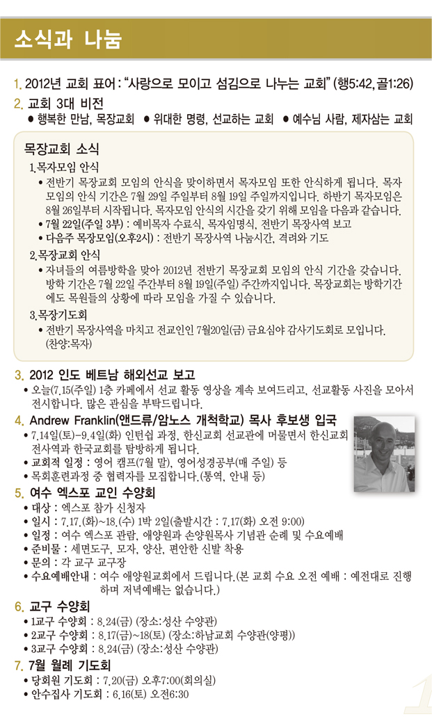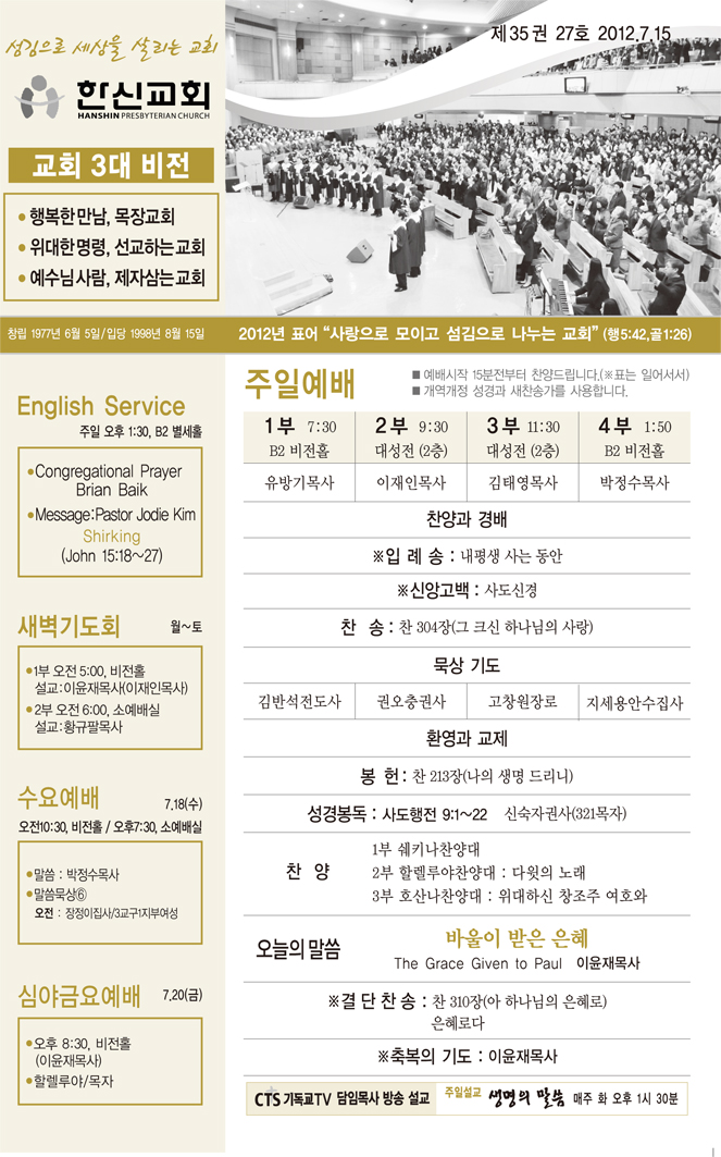 2012³â7¿ù ¼Â°ÁÖ(7/15)¿¹¹è, ±³È¸¼Ò½Ä |