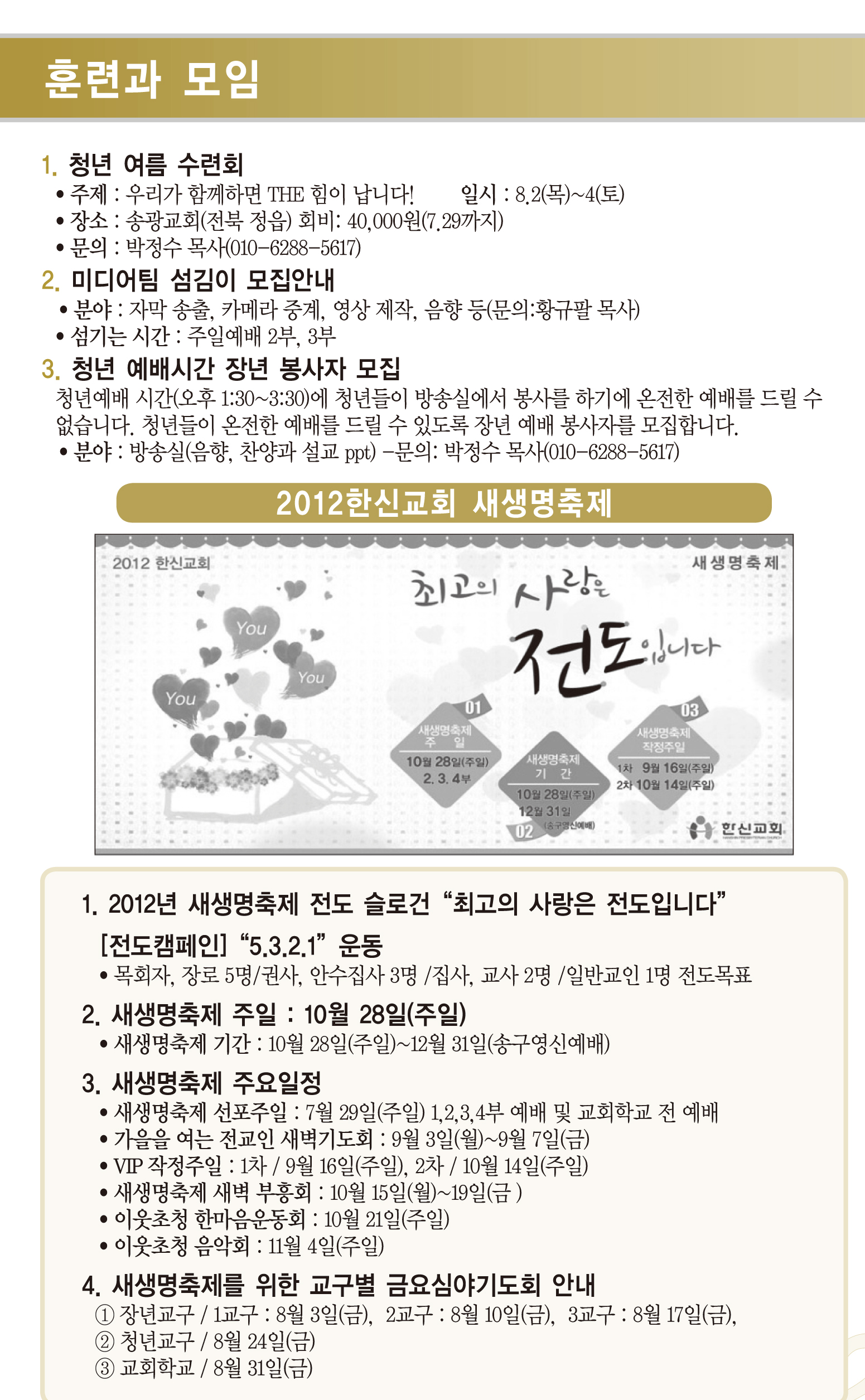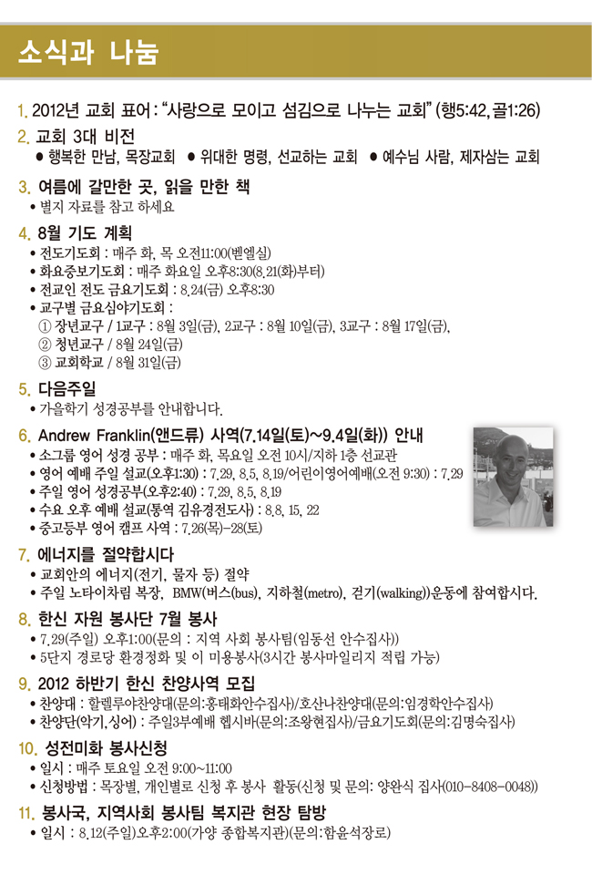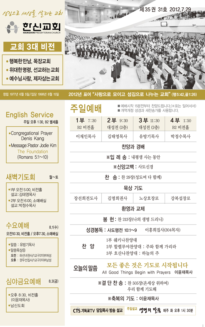 2012³â7¿ù ´Ù¼¸Â°ÁÖ(7/29)¿¹¹è, ±³È¸¼Ò½Ä |