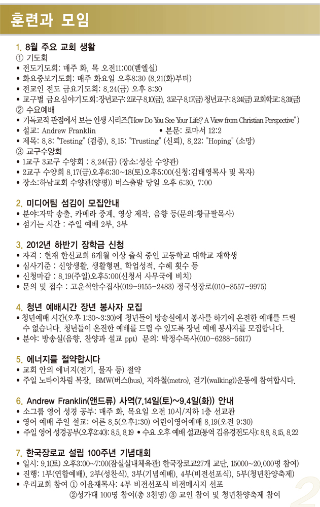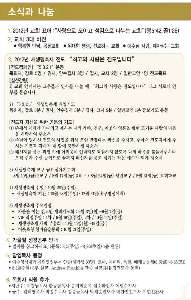 2012³â8¿ù ù°°ÁÖ(8/5)¿¹¹è, ±³È¸¼Ò½Ä |