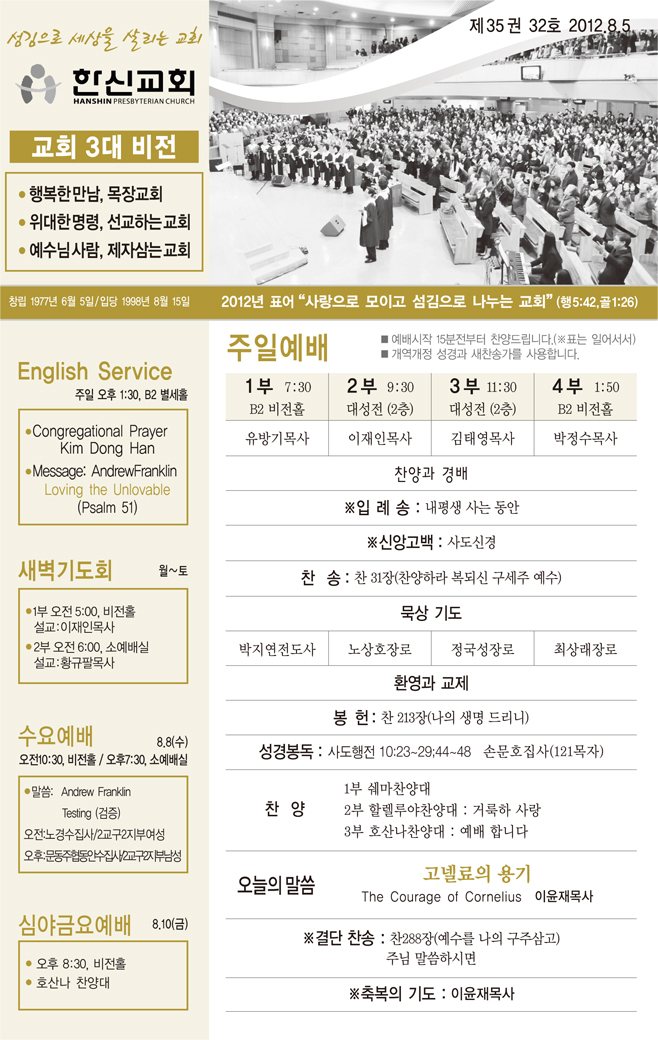 2012³â8¿ù ù°°ÁÖ(8/5)¿¹¹è, ±³È¸¼Ò½Ä