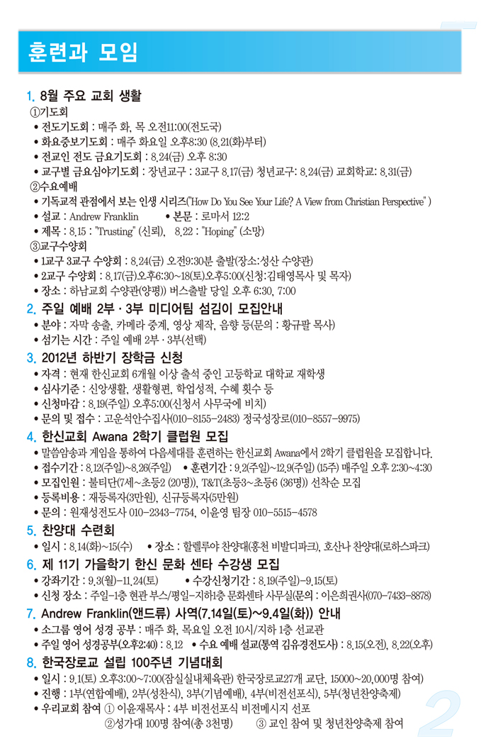 2012³â8¿ù ù°°ÁÖ(8/5)¿¹¹è, ±³È¸¼Ò½Ä