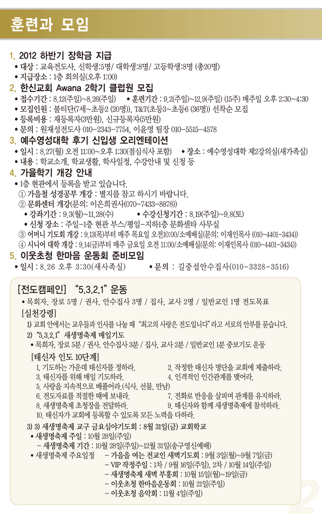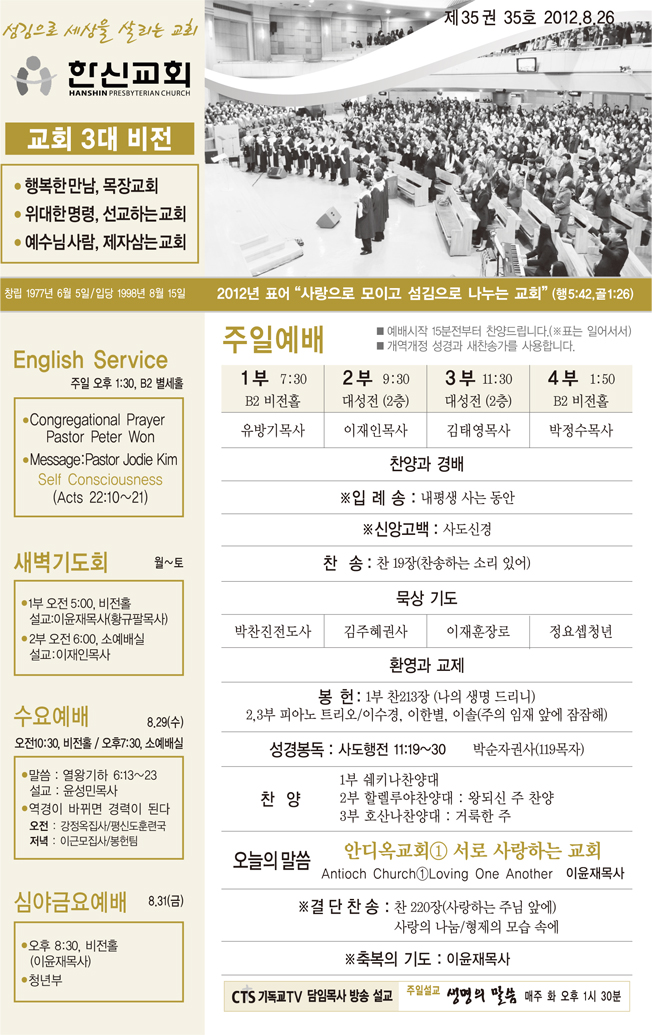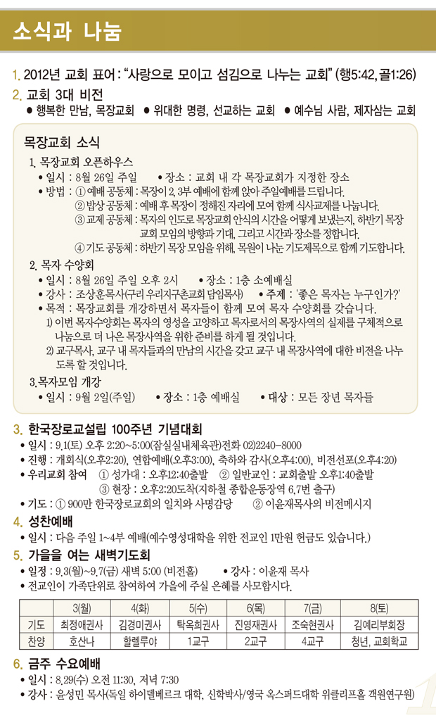 2012³â8¿ù ³Ý°ÁÖ(8/26)¿¹¹è, ±³È¸¼Ò½Ä |