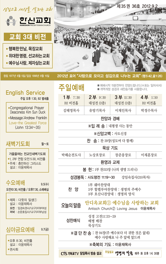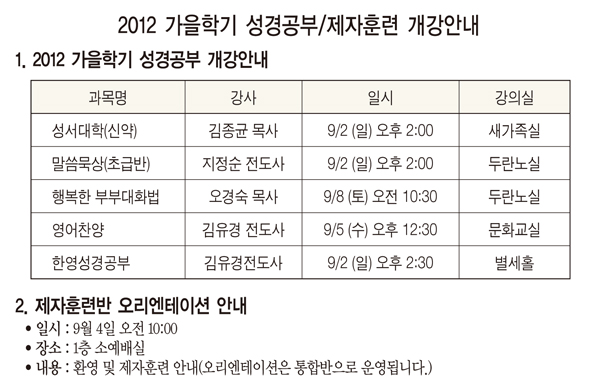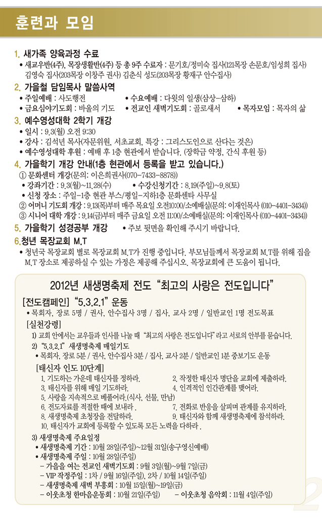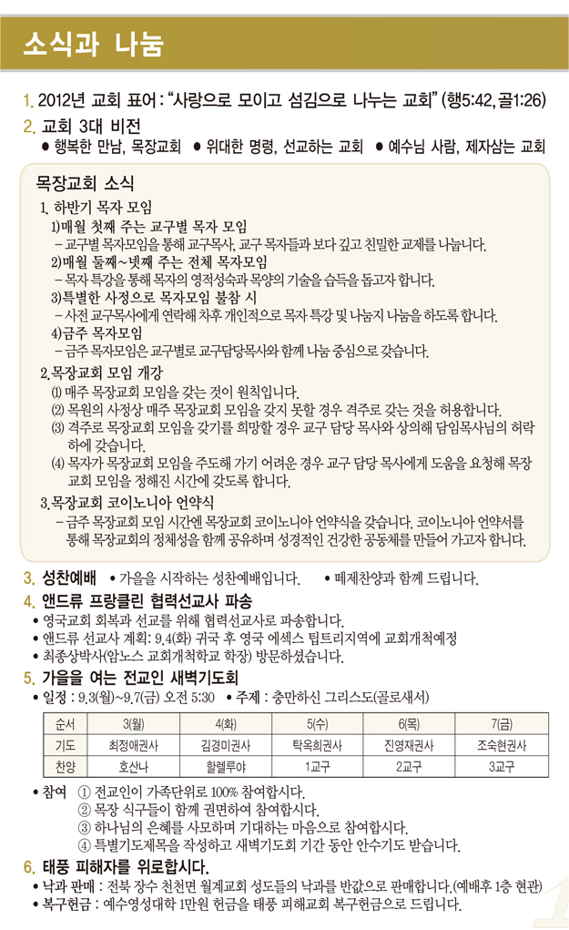 2012³â9¿ù ù°ÁÖ(9/2)¿¹¹è, ±³È¸¼Ò½Ä |
