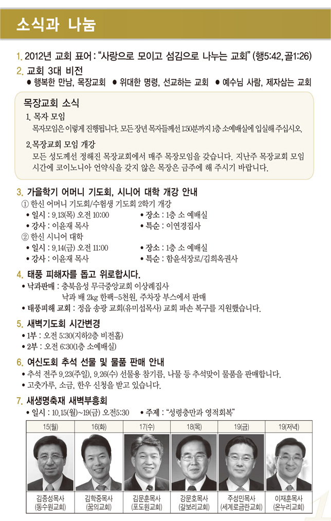 2012³â9¿ù ù°ÁÖ(9/2)¿¹¹è, ±³È¸¼Ò½Ä