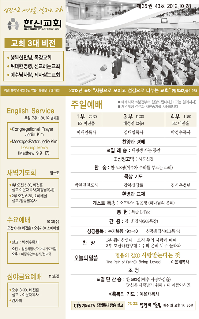 2012³â10¿ù ù°ÁÖ(10/7)¿¹¹è, ±³È¸¼Ò½Ä