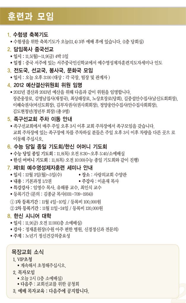 2012³â11¿ù ù°ÁÖ(11/4)¿¹¹è, ±³È¸¼Ò½Ä |