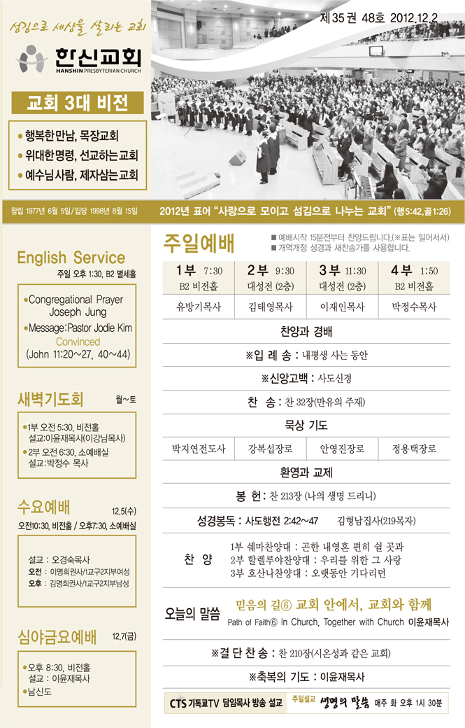 2012³â12¿ù ù°ÁÖ(12/2)¿¹¹è, ±³È¸¼Ò½Ä |