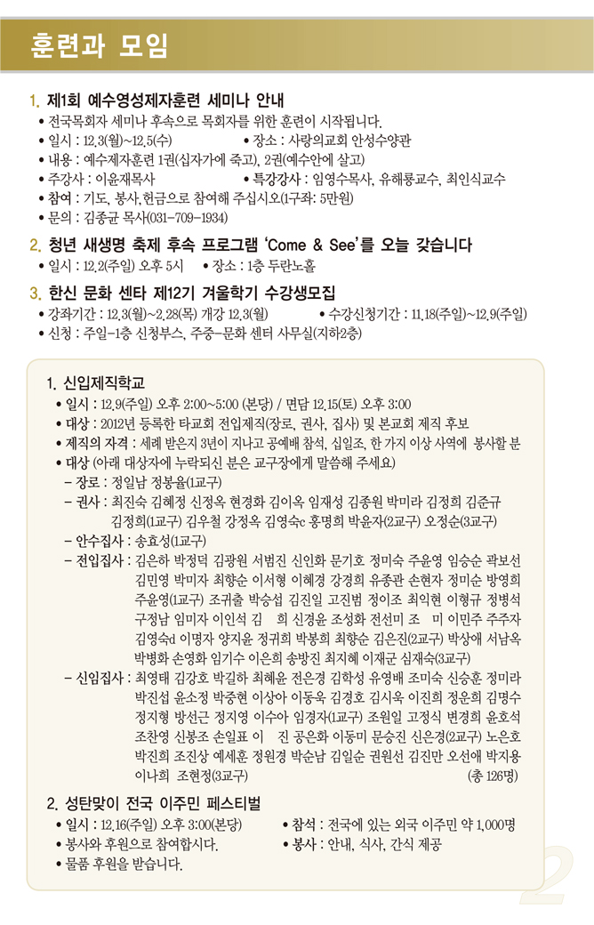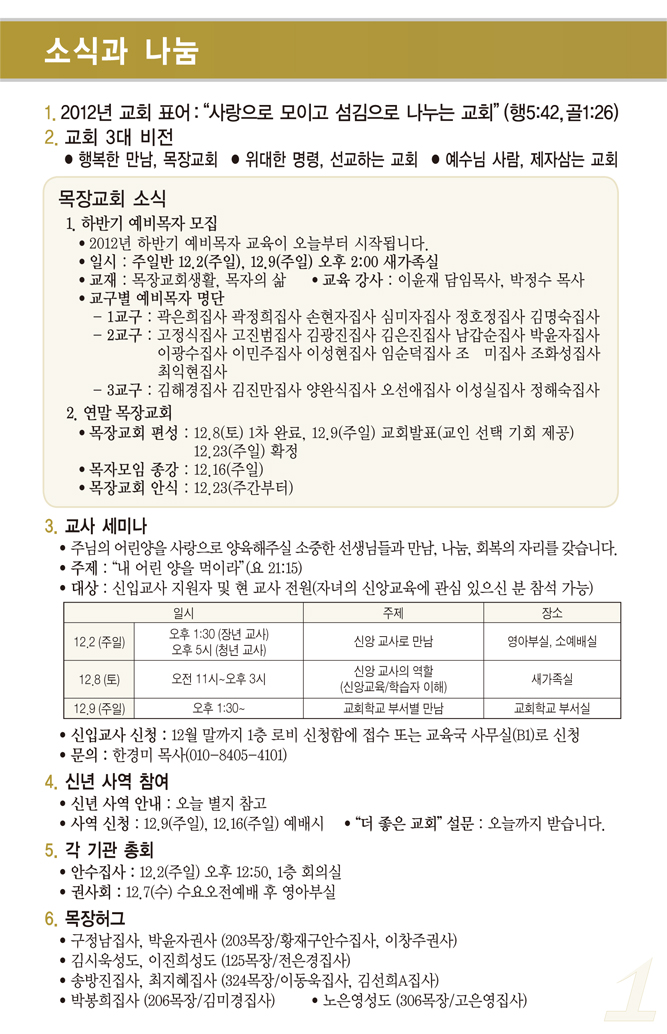 2012³â12¿ù ù°ÁÖ(12/2)¿¹¹è, ±³È¸¼Ò½Ä