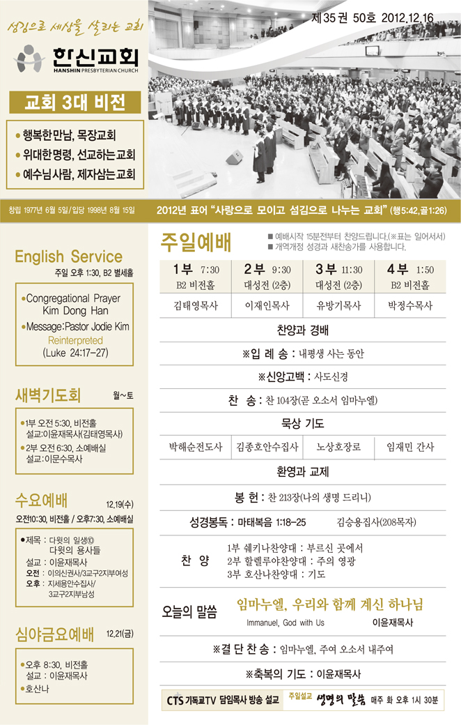 2012³â12¿ù ³Ý°ÁÖ(12/23)¿¹¹è, ±³È¸¼Ò½Ä