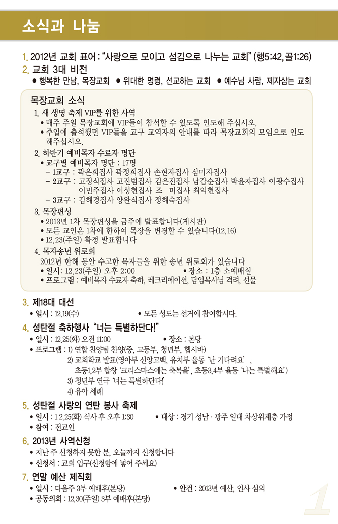 2012³â12¿ù ù°ÁÖ(12/2)¿¹¹è, ±³È¸¼Ò½Ä