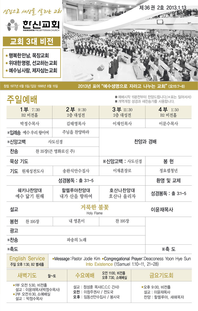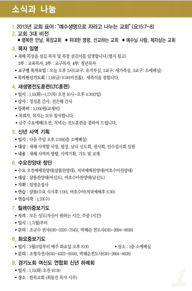 2013³â1¿ù µÑ°ÁÖ(1/13)¿¹¹è, ±³È¸¼Ò½Ä |