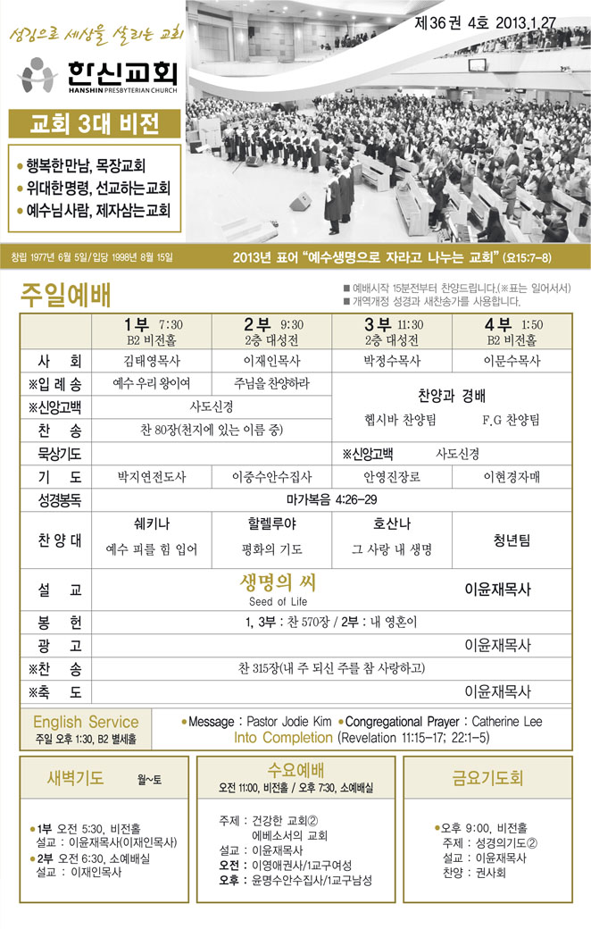 2013³â1¿ù ³Ý°ÁÖ(1/27)¿¹¹è, ±³È¸¼Ò½Ä |
