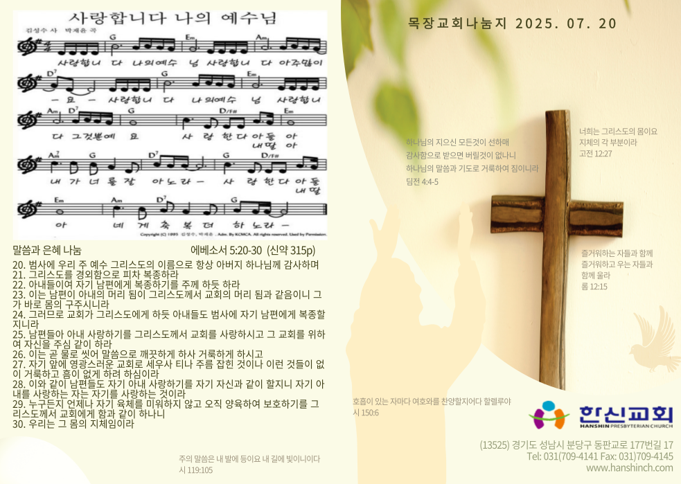 Á¦¸ñ 2025.07.20 ¸ñÀå ³ª´®Áö À̸§ Çѽű³È¸ (hanshinch)
