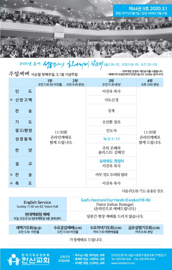 2020³â 3¿ù ù°ÁÖ(3/1)¿¹¹è, ±³È¸¼Ò½Ä