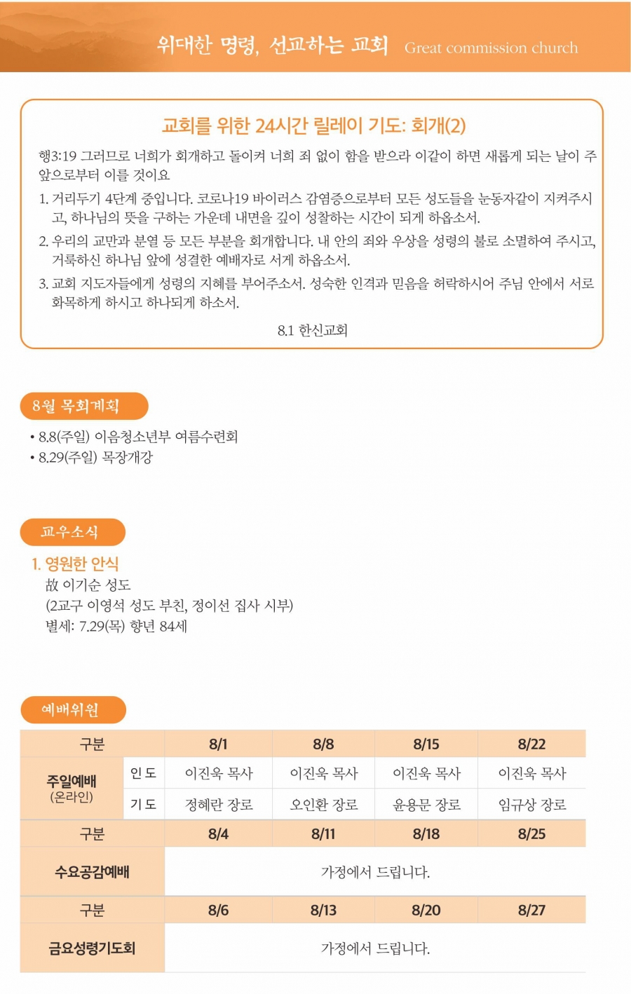 8¿ù ù°ÁÖ ±³¿ì¼Ò½Ä ¾È³»[2021.8.1]